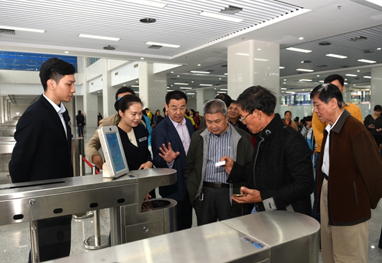座談會開始之前,姜宏濤、劉海榮、王修奮等陪同老干部參觀新落成的??谄嚳傉荆隄麻L親自當起了“向?qū)?rdquo;,向老干部介紹海口汽車總站現(xiàn)代化的自助售檢系統(tǒng)、智能化調(diào)度系統(tǒng)、信息發(fā)布系統(tǒng)、安防監(jiān)控系統(tǒng)以及先進的人臉識別、車牌識別,車輛自動檢測、自動報班等功能。老干部們被眼前一座現(xiàn)代化、智能化、生態(tài)型道路客運樞紐站所震撼,對公司近年來發(fā)展成果給予點贊。